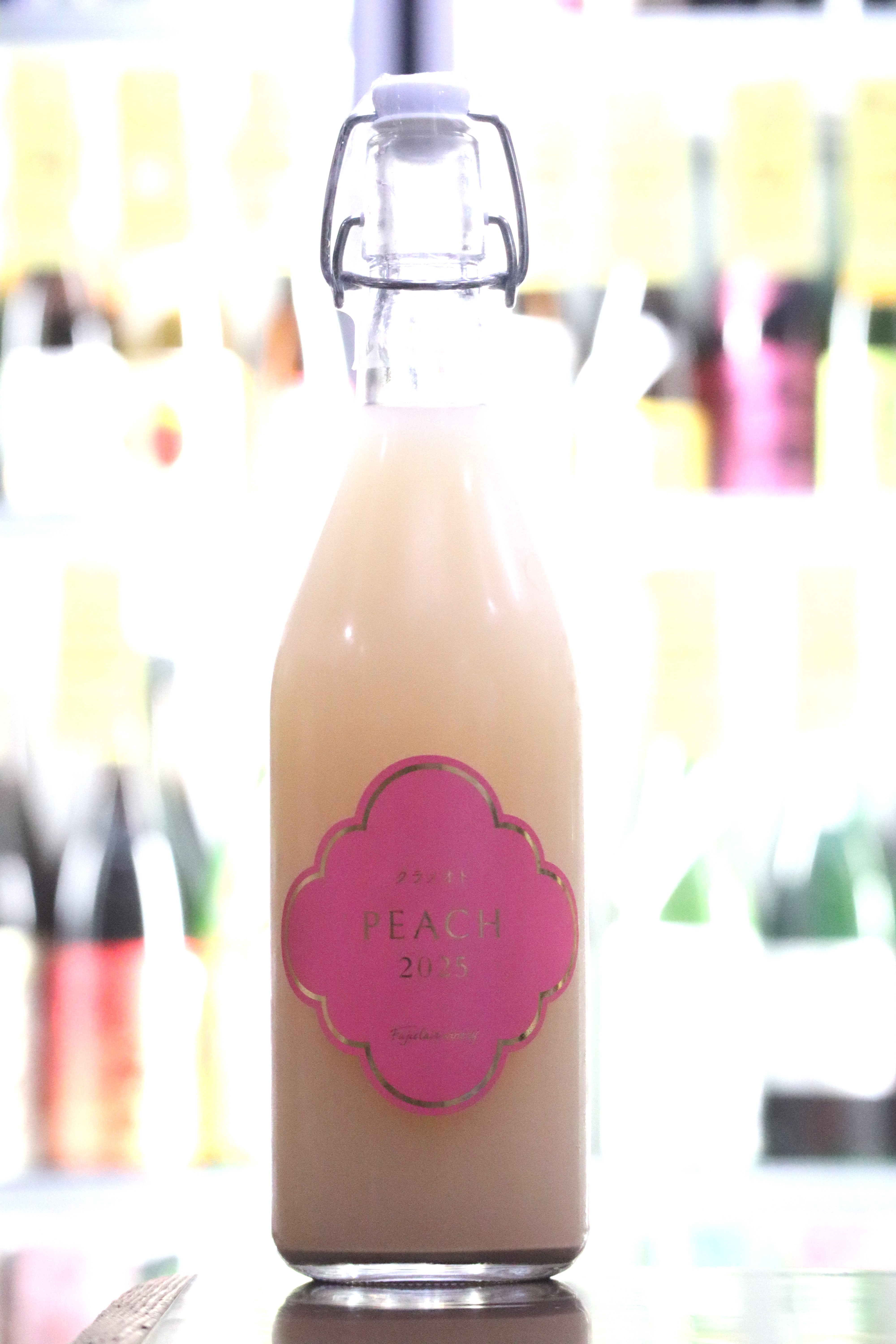 発酵を終えたばかりの無ろ過のワインを瓶詰めしてあるためピチピチした舌触り、桃の豊かな香りと味わいを封じ込めた濁りタイプです。